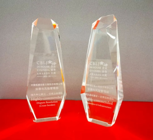 这是继自公司2015年荣获World ECR最佳出口内控合规团队奖、2016年荣获国际著名法律媒体——In-House Community“年度全球工程类最佳公司法务团队大奖”、2017年入围汤森路透亚洲法律评论ALB“2017年度最佳国有企业公司法务组”大奖、2021年荣获CBLJ《商法》企业法务大奖后再一次获得外部奖项,表明了国际法律媒体对公司法律团队专业能力的高度肯定和认可。